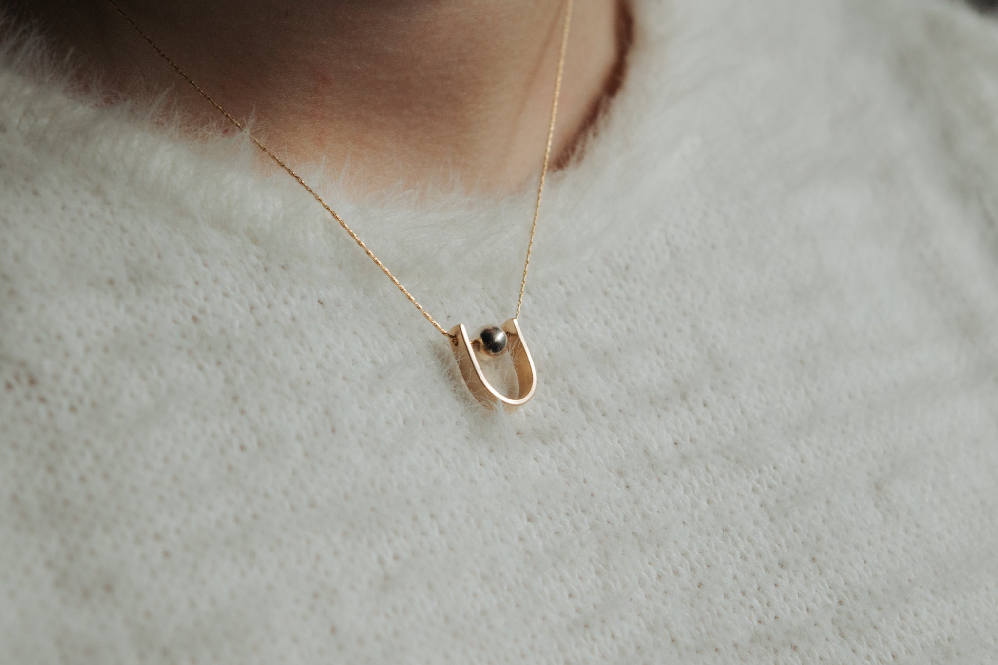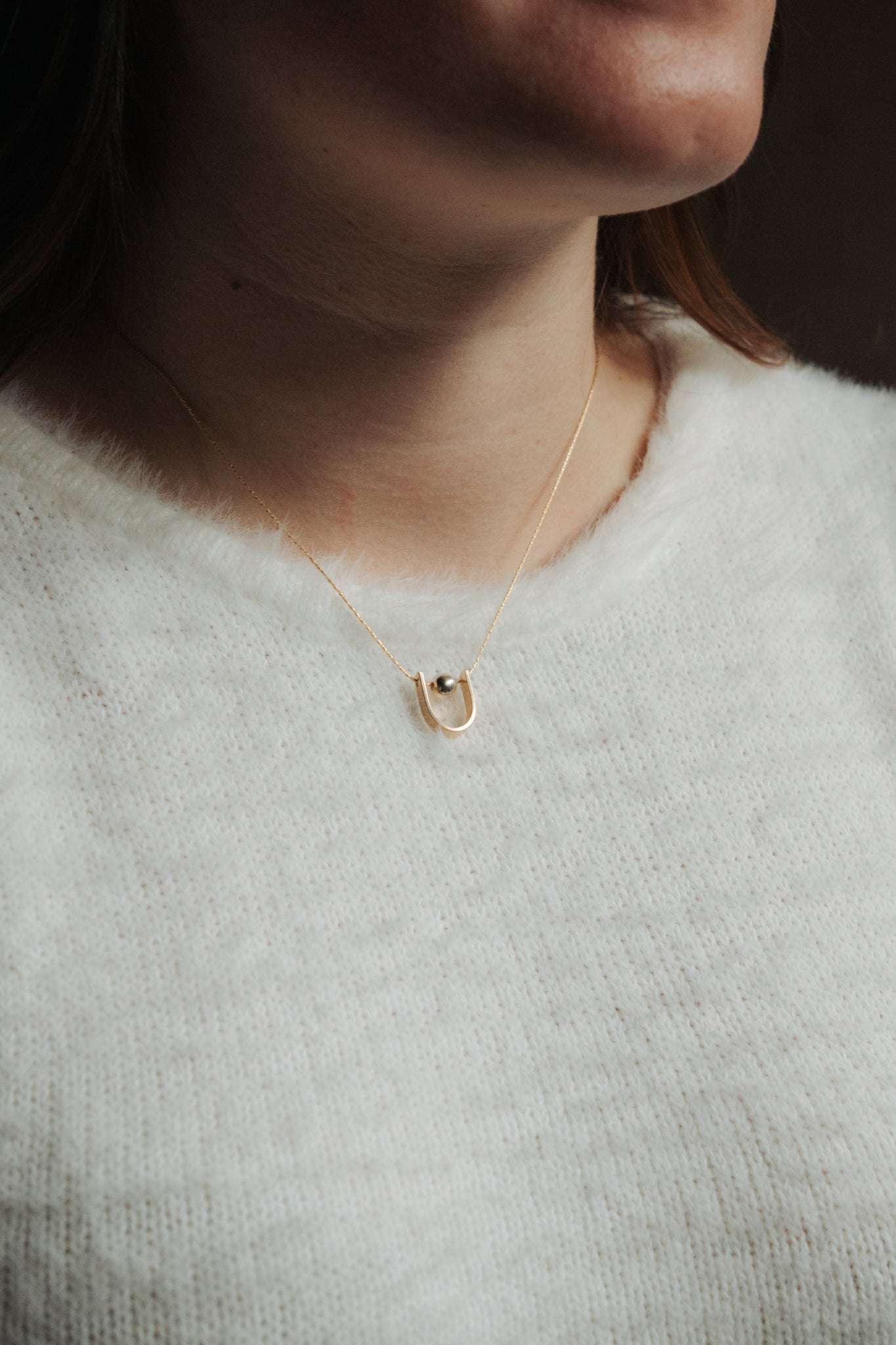 The Arc & Sphere Necklace combines a mixed-metal outer arc and inner sphere, creating a balanced, geometric design. Suspended on a sleek, 17" snake chain, this simple piece offers effortless elegance for daily wear.