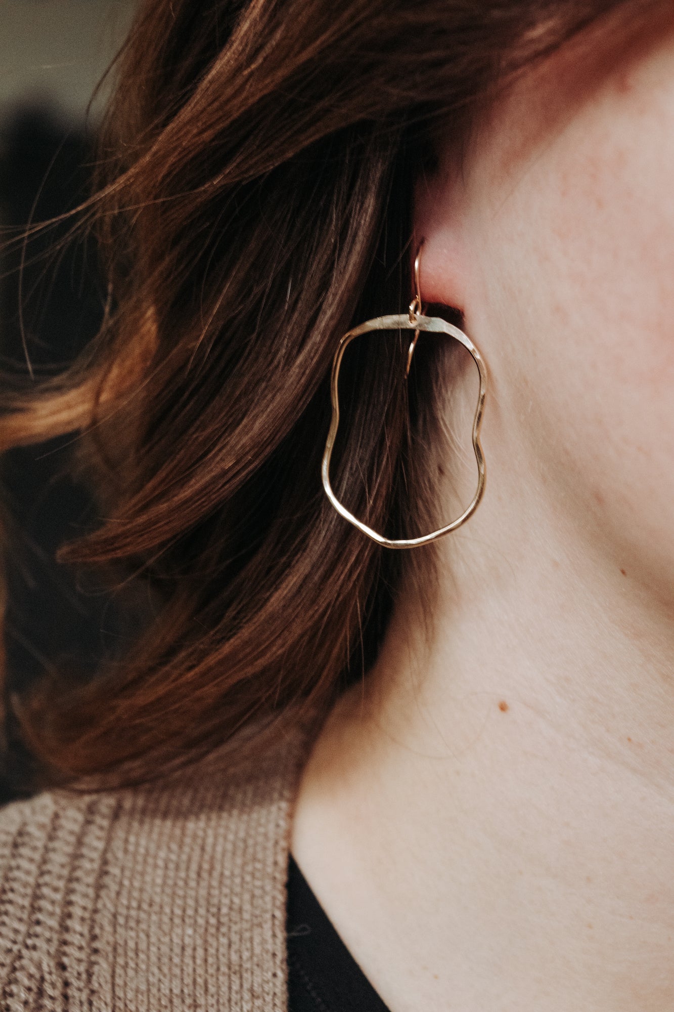 These earrings are simple, organically hand shaped hoops. Each pair will be unique, reminding us how special we all are. Each pair is gently hammered and catch the light in interesting ways. Choose which metal you'd love to adorn and stand out of the ordinary in these lovely earrings!