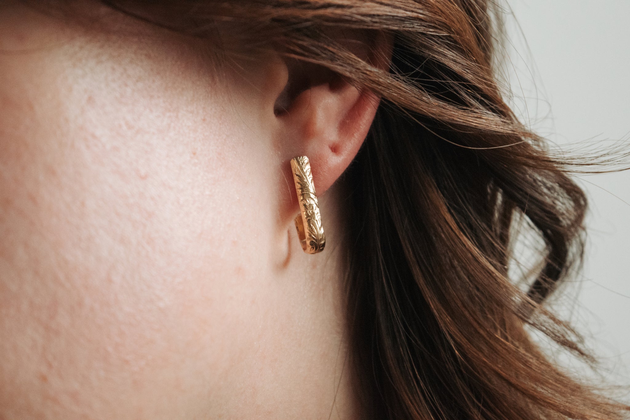 These huggies add a different take on the Floral hoops, these earrings hug your ear lobes with a rectangular shape. These make an effortlessly stylish look and add the finishing touch to any outfit!